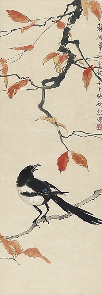 红叶喜鹊(纸本水墨设色) 1942年