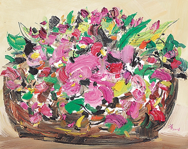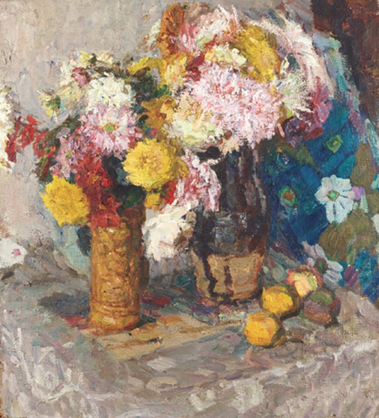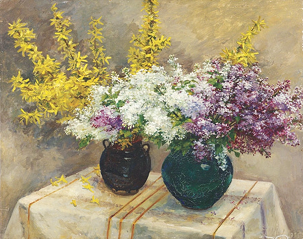 丁香花与迎春花(木板油彩) 1955年