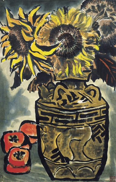 葵花与柿子(纸本水墨设色) 20世纪60年代初