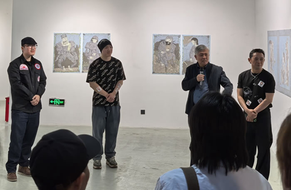 开幕式上,同济大学知名教授吴国欣,当代诗人、作家及策展人古冈,上海鸠申文化董事长熊玫分别致辞,分享了他们对《小丑伊莉丝》(The Joker Elise)展览核心主题的深刻见解。展览现场,嘉宾围绕展览如何呈现艺术创作的自由性与流动性展开讨论,探讨了伊莉丝及其追随者们在追寻自我与自由过程中所面临的内心挣扎和外部挑战。讨论还围绕艺术作品的情感表达、创作自由与无拘无束的艺术精神展开,特别提到《福罗·沙人》(Forro the Sandman)和《无者军团》(Army of None)的情感深度和艺术性表现。