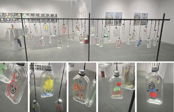 展览还包括象征无意识创作的《无思档案》(The Archive of Unthinking)和《涂鸦瓶子》(Doodle Bottles)展台,中央柱子上小巧的伊莉丝图案相互互动,指引观众探寻更多。