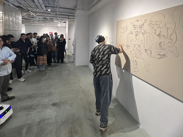 展览空间极具互动性,《伊莉丝涂鸦梦想》(Elise Doodle Dreams)通过艺术家Michael Huang即兴创作的画作展现了小伊莉丝在墙面与画布间的自由互动,反映了她多变的个性与无拘无束的生活态度。
