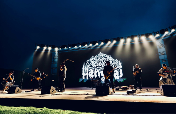 开幕式现场,杭盖乐队受邀演出。在马头琴、陶布秀尔与架子鼓、电吉他的交融里,在蒙古族民族音乐与摇滚乐的融合中,与主题展共同构建起融合广袤自然风貌与昆仑文化的公共艺术空间,为夏季的昆仑山带来了一场全新的视听盛宴。