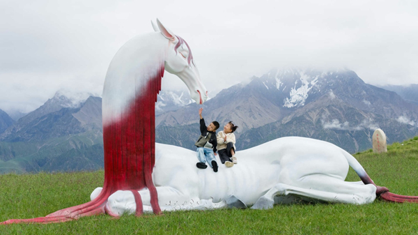 据悉,邱启敬在地创作的20多件“异人国”系列雕塑作品亮相,包括氐人国、女子国等《山海经》文献中记载的形象,这批作品将在景区内长期陈列。展出的20多件《山海经》神兽,它们置身于草地、步道间,以雪山为友,与白云为伴,营造出了移步易景、处处皆不同的特殊地域文化场景,并通过神兽雕塑向人们诠释中国传统文化中东方哲学与智慧。