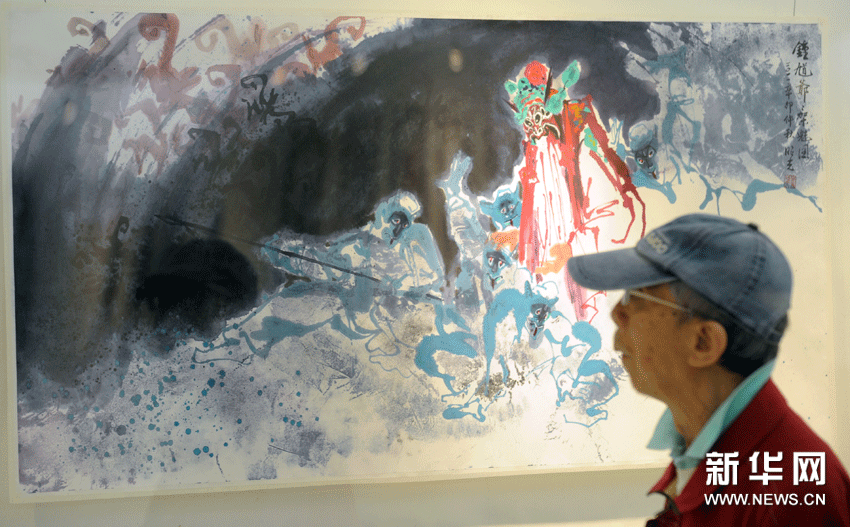 (1)11月12日,观众在台北孙中山纪念馆德明艺廊参观“舞光拾色”孟昭光水墨画展。