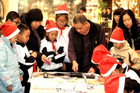 展会组织者还邀请了天津不同年龄段的在校学生及美术爱好者与艺术家们交流切磋版画技艺,并在展会中开辟一块艺术实验场地让孩子们现场绘制艺术作品。(文/归莎)