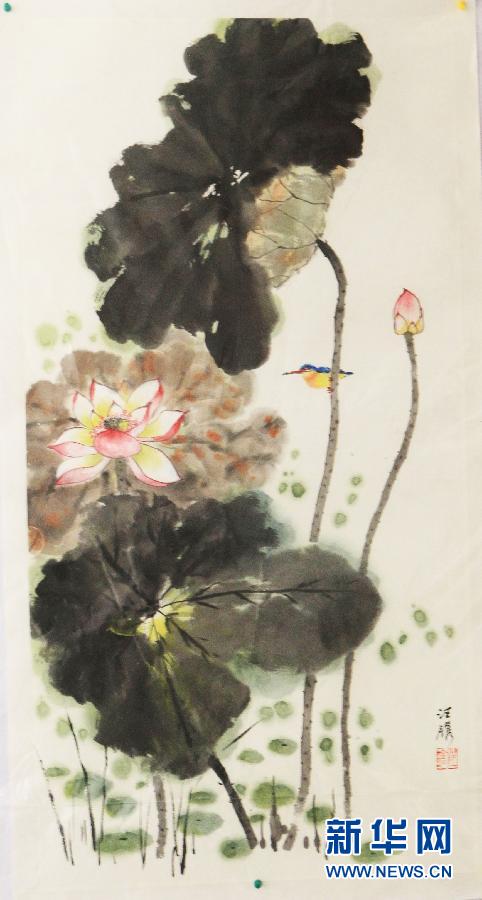 这是汪镌画作《荷》(12月28日摄)。12月28日,北京青年女画家汪镌个人画展在北京城外城润京会所举行,展出约50幅作品。汪镌中国画画风以传统为主,善于小写意,秀美清新,意味隽永。(新华社发 张燕辉摄)