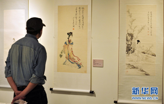 5月10日,观众欣赏溥心畬的《洛神图》(中)、《仕女图》画作
