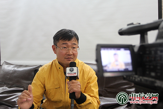 “状态——赵俊忠油画作品展”新闻发布会现场 赵俊忠接受媒体采访 中国文艺网 单莯泽 摄