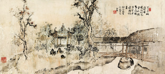 关山月作品:《广西建设研究会园景》 40.7cm×80