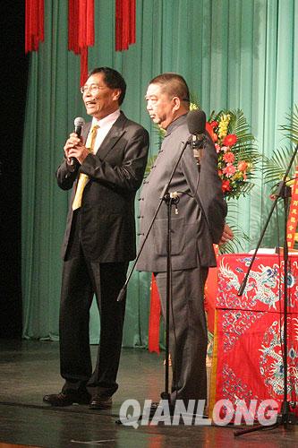 昨晚的东城区文化馆座无虚席,观众上至七八十岁的老者、下到十几岁的孩子。相声表演艺术节李金斗和孟凡贵作为主持人向观众介绍了到场嘉宾和张志强、刘廷凯两位演员。张刘两人都是北京曲艺团第三批科班出身的相声演员,张志强1975年考入北京市艺术学校曲艺班,毕业后成为北京曲艺团专业演员,1990年拜著名相声演员赵世忠为师,被列入北京市国家级相声传承人。刘廷凯毕业于北京市艺术学校,跟随罗荣寿学习相声,毕业后留在北京市曲艺团任相声演员。1988年拜相声名家李国盛为师,在李国盛悉心指导下,演艺水平日臻成熟。李金斗介绍说,二位带给观众的是真正的北京相声。