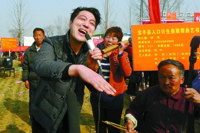 次日是正月十三,也是当地马街书会的正日子。一大早儿,朋友把我们送到马街书会的现场时,已是人声鼎沸,民警忙不迭地指挥着利用汽车、农用车、电动自行车等各式交通工具到达现场的人们, 而步行的老乡们也是携儿带女,扶老携幼,兴高采烈地从大路、小路、河边、田埂,甚至小树林里鱼贯前行,我们远远的停下汽车,夹杂在人流里,直奔喧闹的书会现场。