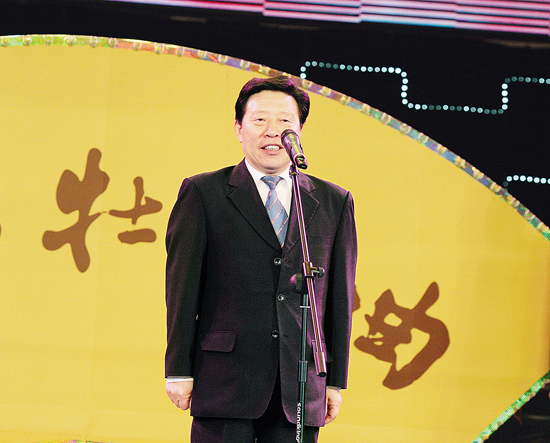 2008年10月15日晚,第五届中国曲艺牡丹奖颁奖晚会在南京隆重举行,图为全国政协副主席、中国文联主席孙家正宣布颁奖晚会开幕