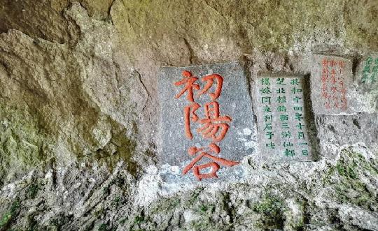 “初阳谷”三个字是洞内最耐人寻味的摩崖石刻。“初”字少了一点,是书法家有意为之,旨在要由清晨第一缕阳光射进时,才可补上这一点。