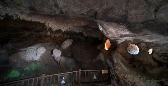 (阳谷三窍)倪翁洞又叫初阳谷或阳谷洞,每天清晨初升阳光首先照到。洞中有灯盏洞、米筛洞、读书洞三洞并连,当早晨太阳升起,一缕阳光直接穿过不同方位的三个洞,被人们称为“阳谷三窍”。