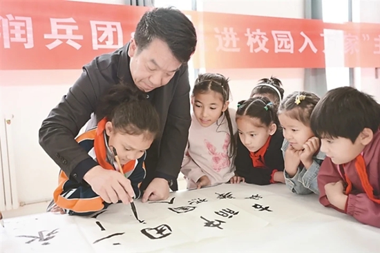 兵团文联、兵团书协着眼当下、聚焦未来,以“书法进校园”浸润各族青少年心灵。青少年是祖国的未来,是铸牢中华民族共同体意识的重点,将校园和家庭作为主阵地之一,既有现实意义又具战略前瞻性。兵团文联、兵团书协目前已为兵团14个师(市)各打造1所书法特色示范学校,每所学校示范性培养300名以上各民族“小小书法家”。此举意在建立标杆,形成辐射效应。活动通过规范化建设,按照兵团第八师石河子三小的成熟样板校标准,举办现场观摩会、交流会,进而快速提升各师(市)校园书法教育水平,做到有教无类、规范施教;为重点培养对象建立“档案”,邀请中国书协主席团成员,选派兵团、师(市)书法家定期指导,在线上线下开展教学培训,不仅传授了技艺,更在孩子们心中深植了中华文化的根苗。当不同民族的孩子们一同研墨展纸,临帖习字,在横平竖直中感受规矩,在挥毫泼墨间抒发情感,他们共享的是中华文化的雨露阳光,自然而然增进了对中华文化的认同感和作为中华民族一员的自豪感。这种“浸润式”的教育远比单纯的说教更为深刻、持久。同时,活动还以展览展示的方式,通过“书润兵团”活动搭建内地青少年学生与新疆学生书法交流的桥梁,在中国书协的指导下举办全国中小学生书法作品展,并组织开展各师(市)巡展,打破地域界限,让兵团的青少年有机会与全国的同龄人通过书法进行艺术对话和心灵交流。这不仅提升了活动的层次和质量,更重要的是,它将新疆和兵团置于全国文化大家庭的视野中,让内地的孩子们关注新疆、了解兵团,也让新疆的孩子们感受到来自全国的文化支持和认同,有效促进了兵团学生与内地省市青少年学生的情感交融和文化相通。