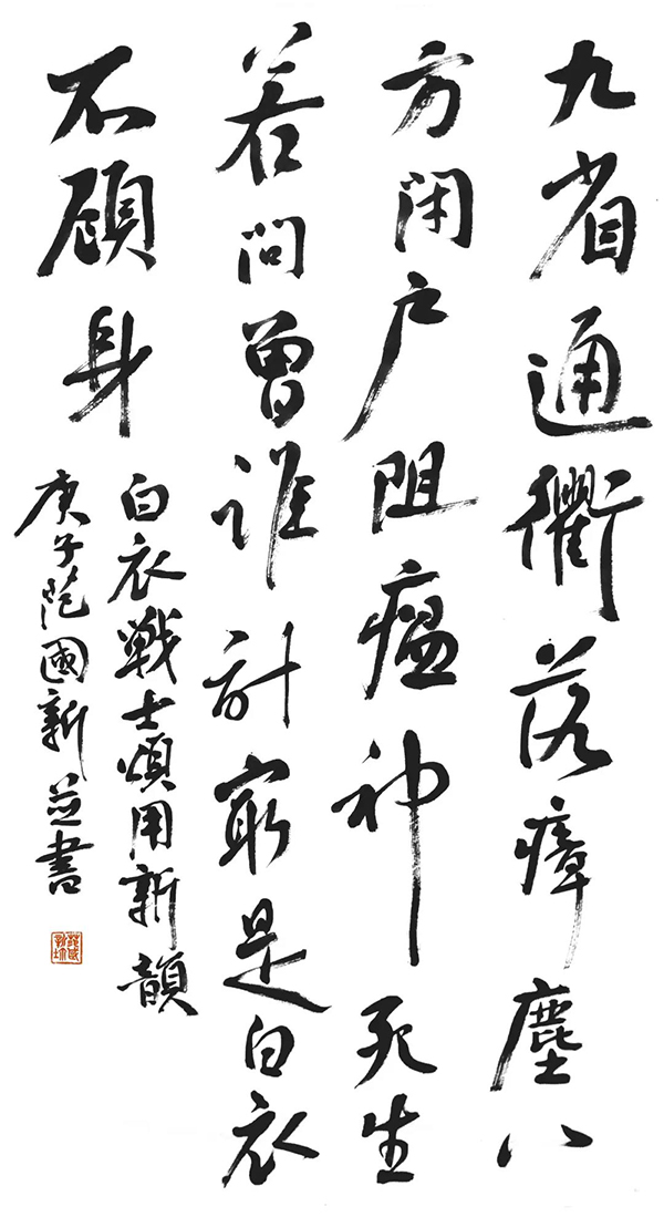 问谁能解心中苦。袭袭白衣若翎羽。抗击瘟君何所惧。