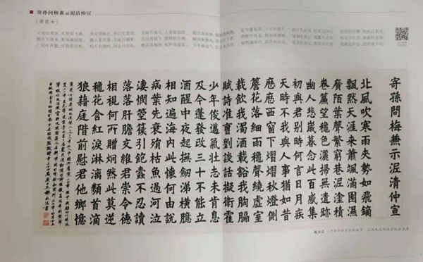 让无声的书法成为可聆听的诗歌,也是本次展览的亮点。上海永法文化创意产业发展基金会副理事长兼秘书长杨永法介绍,筹备展览期间邀请专业播音员为每首诗录制朗诵音频,并制作成二维码。观众在观赏书法作品时,可通过微信扫描二维码,在手机上看到烈士生平介绍,聆听烈士诗歌,让艺术呈现更立体。