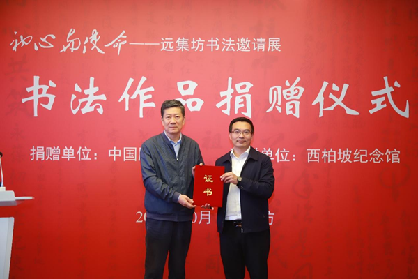 人民网北京10月11日电 中国版权协会向西柏坡纪念馆捐赠《初心与使命——远集坊书法邀请展》书法作品仪式近日举行。