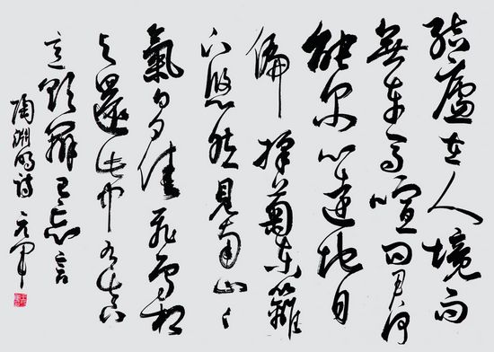 毛笔是他理解传统文化的工具,也是他体会古人智慧的窗口。在对传统书法的临摹之中,他体会到了悲怆、激情的生命之音。在今日日益浮躁的世风之下,他更加强调传统古典之美对于人们心灵的涤荡作用。他调侃说,自己是一个“偷窥者”——透过一个小洞,去偷看古代的社会现实、文人生活、艺术真谛,将窥视到的东西用毛笔来展现。他曾经这样阐释他的理念:“人生短暂,欲以有限之生命求得无限之学,何人能及?书虽小道,穷一生之力所能得者,亦不过一小技之胜耳。吾胸无大志,既无野心傲视古今,又不敢奢望以一小技流芳万古。但求以一虔诚之心,师先贤之余墨,追前哲之智慧,味前代之文化,并得无薄古之心之生而授之,使此一小道得以气息传承,亦足以快慰吾心矣。”