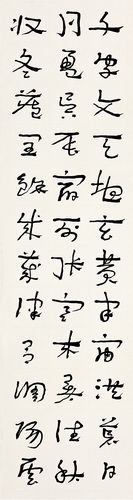 幺喜龙的隶书由篆隶正脉入手,然后为我所用,关键在于通过篆隶之变而现“天机自然之妙”。他以“拙”去书写隶书妙境,不仅重视表现形式上的一派天机的“拙”态的创造,更注重整个创造过程中自然生命力的贯注。《隶书岳阳楼记》(辽宁大厦收藏)堪称是他的隶书代表作。这幅作品蕴涵着他对传统文化的继承和对时代的理想,这种理想是幺喜龙人格之善、生命之真、书法之美的统一。