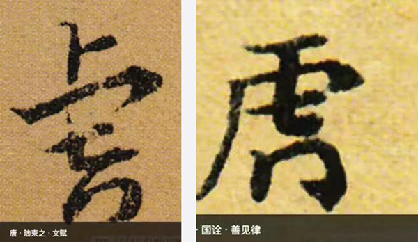 其实,还有不少唐初人写的“虎”字,它们的独特不在于风格,而在于缺胳膊少腿。比如陆柬之《文赋》中有句“或虎变而兽扰,或龙见而鸟澜”,“虎”字没了左半边,也没了最后一竖;贞观年间国诠《善见律》中的“虎”字同样少了一条尾巴。