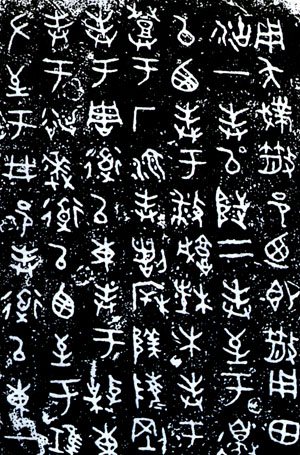 为了有助于说明问题,让我们再对书法艺术的历史作一次不同角度的美学审视:在混沌初开的茫茫太古,鬼神与天命的淫威迫使人们进行着线条的净化,在奇谲变幻的甲骨文和肃穆凝重的金文面前,我们似乎至今还可以看到先民怀着诚惶诚恐而又毕恭毕敬的心情,凭借原始思维的悟性和灵感确立空间意识的情景,它们神秘森然与天然浑成的美学性格都属于那个悲壮惨烈的图腾时代。对神的征服和人的意识的觉醒,使顶礼膜拜的梦境变为情感和意愿在幻想中的交融,汉隶由此冲破了金文的内敛和秦篆的拘谨,成为书法史上开放的典型。大巧若拙的摩崖书,形式本身便是对大写的“人”的热烈歌颂。到了魏晋南北朝那个美学和艺术走向自觉的时代,书法艺术则开始大胆高扬创作主体的精神风貌,执意追求境界的空灵。审美文化的发展取决于人的社会发展,书法艺术的美学风格又由整个社会的审美流向所决定。常言道,唐人尚法,晋人尚韵,宋人尚意,颜真卿、王羲之、苏东坡都是不同时代风格的杰出代表。