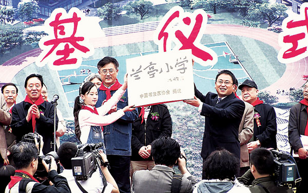 2009年4月25日,在“5·12”汶川大地震一周年之际,中国书协在四川绵竹举行向绵竹市捐建“兰亭小学”奠基仪式并授予“兰亭小学”校牌