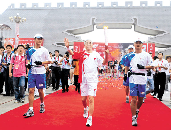 2008年7月27日,中国书法家协会主席张海以奥运火炬手身份在河南洛阳参加奥运圣火传递活动