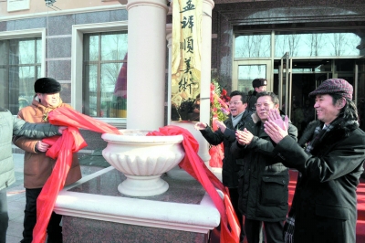 中国美术家协会副秘书长张旭光、黑龙江省原副省长付晓光、鹤岗市市长张雨浦、著名画家孟祥顺为孟祥顺美术馆揭牌。