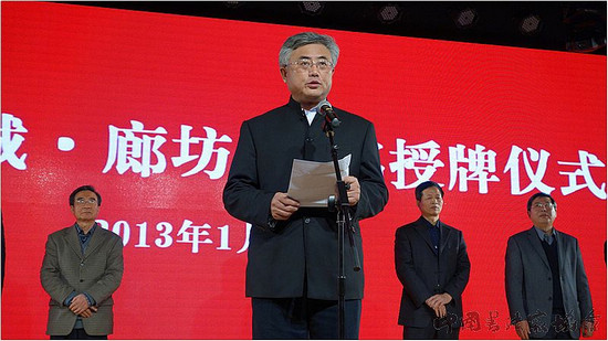 最后,旭宇代表中国书协为廊坊市授牌,廊坊市市长聂瑞平接牌。授牌仪式后,赵长青等领导前往廊坊文联美术馆参观了廊坊书法展。