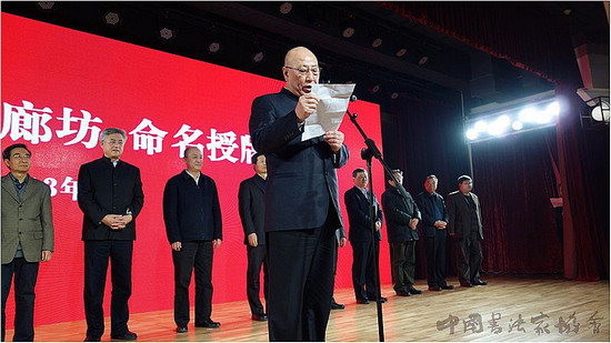 授牌仪式上,张陆一代表中国书协宣读《关于命名廊坊市为中国书法城的决定》。赵长青在讲话中对廊坊市获得“中国书法城”表示祝贺,他说:廊坊地处京畿腹地,历史悠久,文化积淀厚重,滋养了众多燕赵风骨的名人志士。近年来,廊坊的书法事业快速发展,书法团队异军突起,在全国重大书法展览和评奖中取得了可喜的成绩,从中可以看出,廊坊市高度重视文化建设,把发展繁荣书法艺术作为“文化强市”建设的重要组成部分。衷心希望廊坊市以成功创建“中国书法城”为契机,总结经验,着眼未来,开展面向全国具有廊坊特色的书法活动,提升档次,扩大影响,使书法艺术真正成为廊坊文化建设的标志性品牌,为书法事业的大发展大繁荣做出贡献。相金科、冯绍慧分别代表河北省委宣传部、廊坊市委发表了讲话。