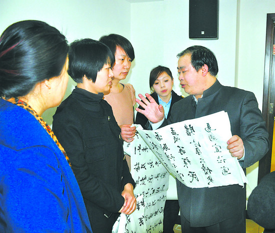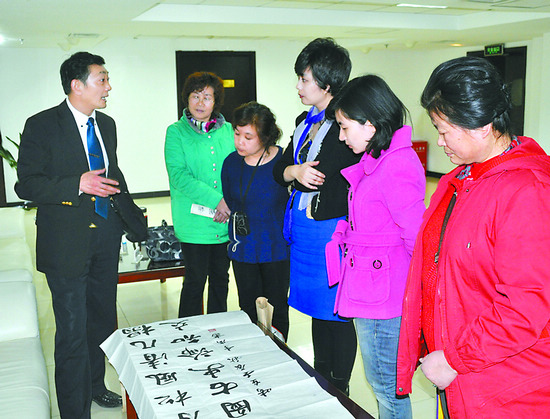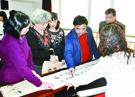 现场的主席团成员依次为女书家们送上节日的祝福与问候,并在两个多小时的分组点评中耐心细致地讲评每幅作品。女书家们都带来了自己创作的多幅作品,请书法家们逐一点评。现场女书家们还互相交流切磋学书体会、点评心得,大家纷纷表示每年都很期待这个点评活动,希望这种活动能多举办,以便更大范围地团结首都女书家,扩大女书家阵容,让更多的女书法爱好者受益。