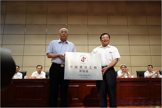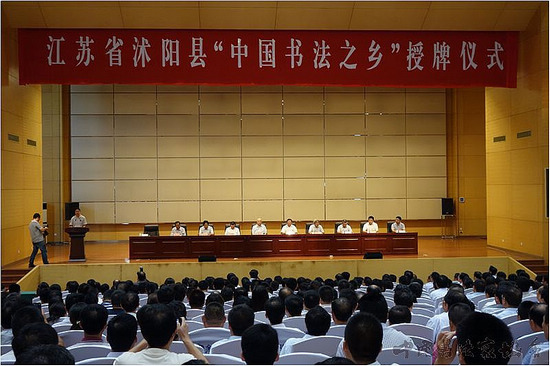 2013年8月10日上午,“中国书法之乡”授牌仪式在江苏省沭阳县隆重举行。中国书协分党组成员、副秘书长张陆一,中国文联书法艺术中心主任刘恒,中国书协组联部副主任、中国书法名城(之乡)联谊会秘书长段军,中国书法名城(之乡)联谊会副会长李木教、吴行、李啸以及沭阳县有关领导和书法爱好者500余人参加了授牌仪式。