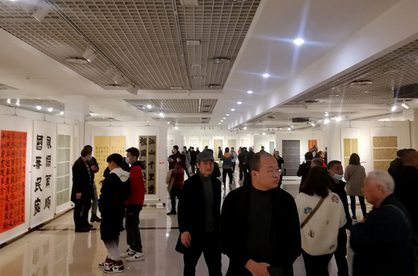 3月5日,“共圆小康梦奋进新征程——重庆市第二届群众书法作品展”在重庆市文联美术馆开幕。图为开幕式现场。