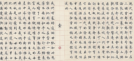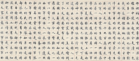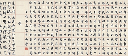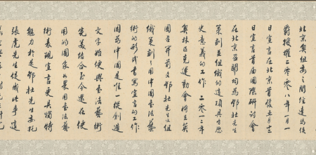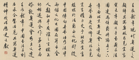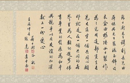 书法家苏士澍、张虎、谷谿、卢中南用四种书体精心创作《奥林匹克宣言》书法长卷