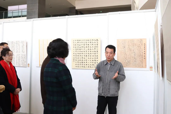 兵团文学艺术院副院长、兵团书法家协会主席孙朝军对参展作品进行讲解