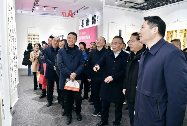 12月19日,由重庆市文学艺术界联合会、重庆市铜梁区人民政府、重庆市书法家协会主办,中共重庆市铜梁区委宣传部、铜梁区文学艺术界联合会承办,铜梁区书法家协会、中国文促会万蚨祥美术馆协办的重庆市首届新文艺群体书法作品展在