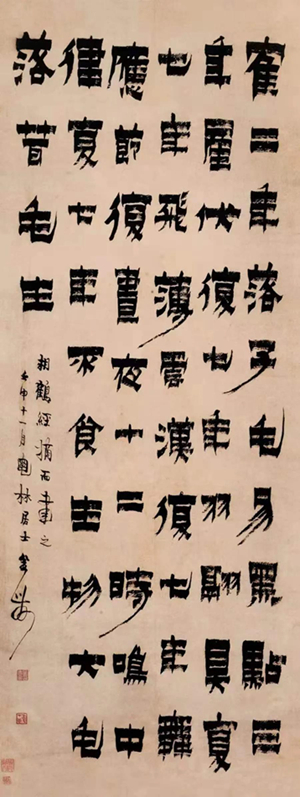 金农(1687—1763或1764年),字寿门,号冬心,又号稽留山民、曲江外史、昔耶居士等。浙江仁和(今浙江杭州)人。受业于何焯。乾隆元年以布衣被荐博学鸿词科,未中,遂游历四方,后居扬州,以卖书画为生。博学多才,工诗文,精篆刻。善山水、人物、花卉,画风古朴,造形新颖奇古,极具个性,秦祖永《桐荫论画》评其“涉笔即古,脱尽画家习气”。50岁后开始绘画创作,与郑燮、高翔、汪士慎等人并称为“扬州八怪”。书法出入楷隶之间,所创“漆书”尤为奇古,颇具特色,富于金石意味,为时人所推重。有鉴于此,《中国书法报》特策划金农书画专题,配以张郁明《禅宗与金农的艺术思想》、毛文睿《金农的“嗜古”情怀》、胡涛《金农题跋中的书画观念》3篇文章,以飨读者。