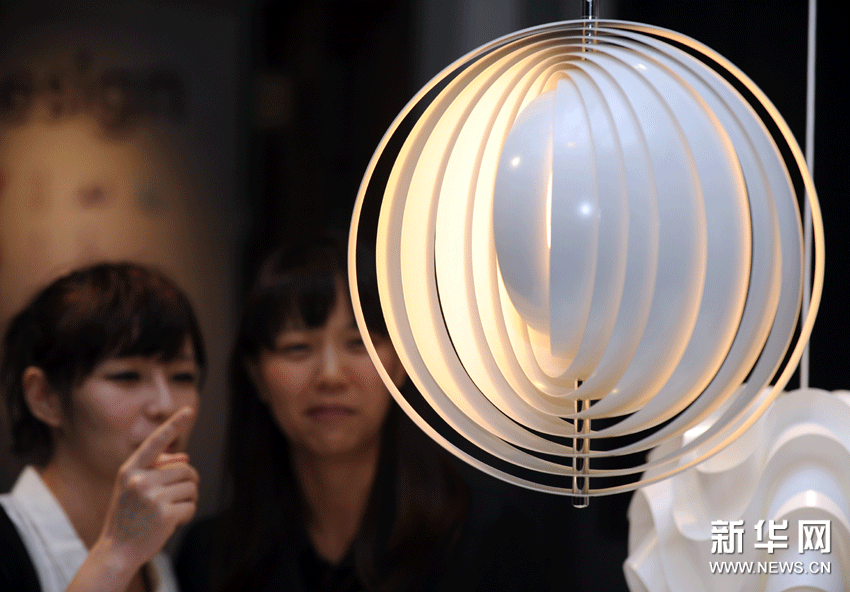 (1)这是2011年9月23日在台湾设计馆拍摄的设计于1960年的月亮吊灯。这盏灯以十片半径各异的圆环相互交迭,可调节光线明暗,好似月亮的阴晴圆缺。