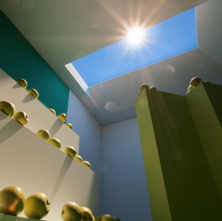 缺少阳光会导致季节性情绪障碍,意大利一所大学的学者用了十年时间开发出一种模拟天空和日光的天花板,从材料和光谱上都极致逼真地展现出自然光线,仅厚几毫米,却能为高纬度缺少阳光或无窗狭小的室内带来柔和而温馨的日光。