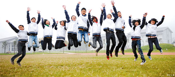 2010年,什邡市洛水中学的同学们在校园的操场上欢呼雀跃。廖文飞/摄