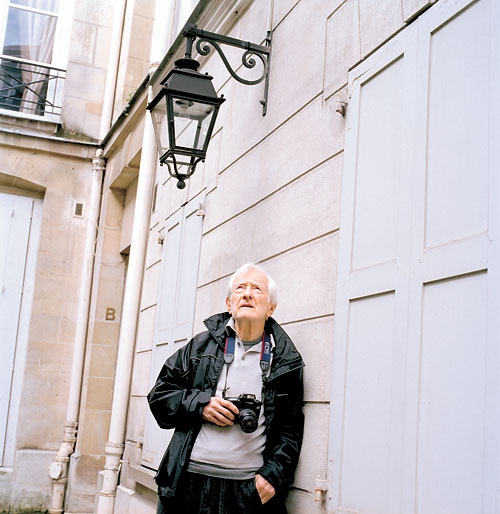 摄影家马克·吕布在小花园里慢慢欣赏完景色,终于走到我希望拍摄的位置,他倚靠在墙边,抬头仰望着天空,若有所思的样子,右手始终没有离开过他的照相机。摄影已经融入他的生命中,他是那种只要睁开眼睛,就要拍照的人。