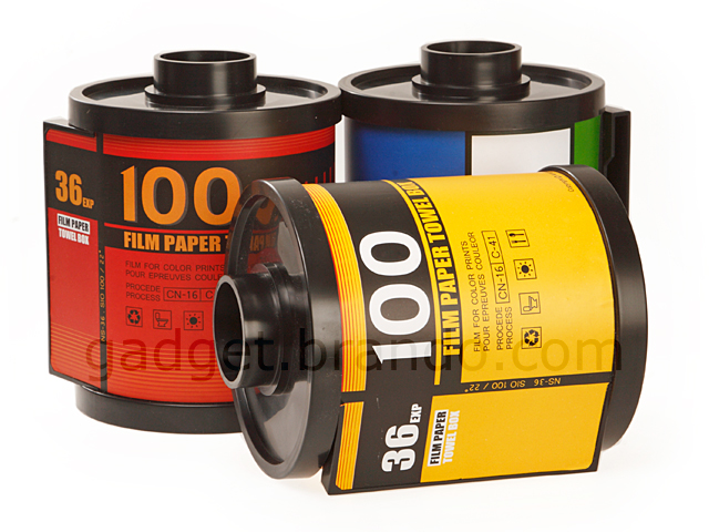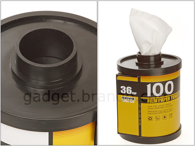 这是一款做成胶卷形状的厕纸盒。使用时可以放在桌上,从上方抽纸;也可以固定在墙上,将纸如胶片一样从侧面抽出。非常适合摄影宅,自用送礼两相宜。