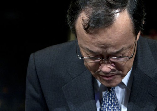 奥林巴斯社长高山修一先生在记者会上进行道歉