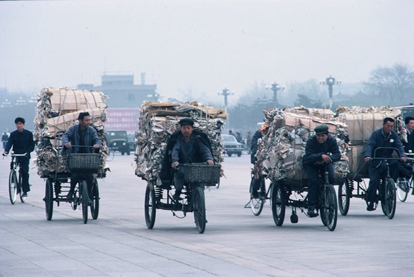 北京 Beijing 长安街清晨,几辆满载废品的三轮车。