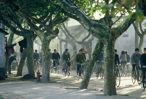 苏州Suzhou 午后的阳光洒落在街道上,树影摇曳,穿流着下班回家的自行车潮。