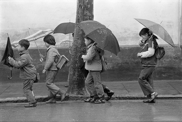 苏州 Suzhou 撑伞上学的学童,是烟雨江南的常见景象。