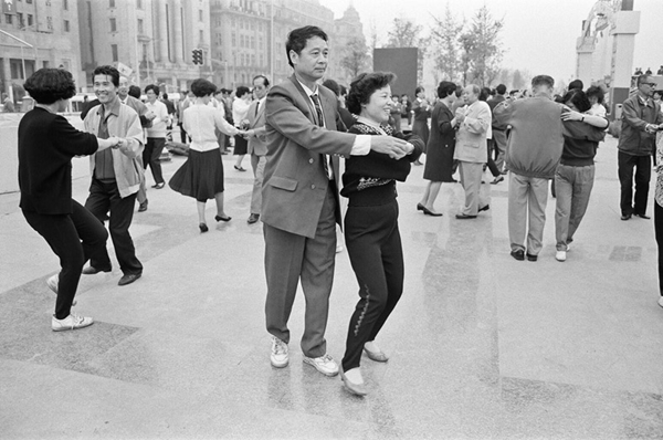 上海 Shanghai 外滩广场上的社交舞。最早的广场舞仍讲求传统的男女成双。