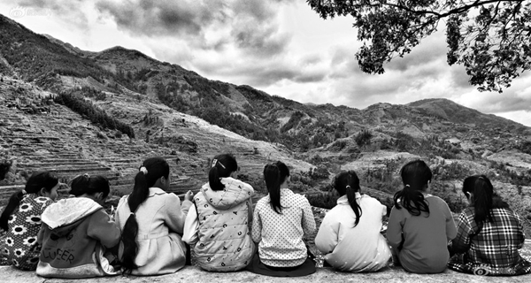 一群女孩们遥望大山之外,她们的父母都在山外的世界打工。